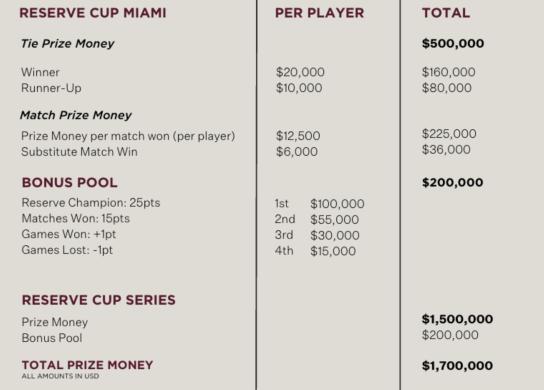 El formato de competición de la Reserve Cup se basa en una clasificación en la que el jugador que sume más puntos en los 3 torneos que se celebrarán a lo largo de este 2025 será el ganador final.