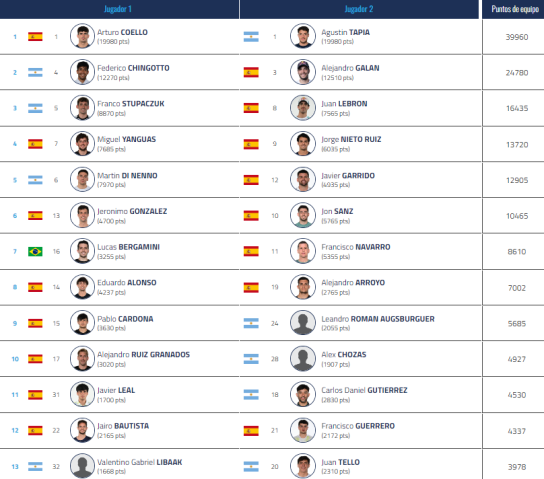 Justo por delante de ellos en el ranking de inscritos se encuentran los campeones del Gijón P2, Curro Cabeza y Diego García. Los jóvenes talentos, que sorprendieron al mundo con su título en Asturias, tendrán una nueva oportunidad para demostrar su calidad frente a las mejores parejas del planeta.