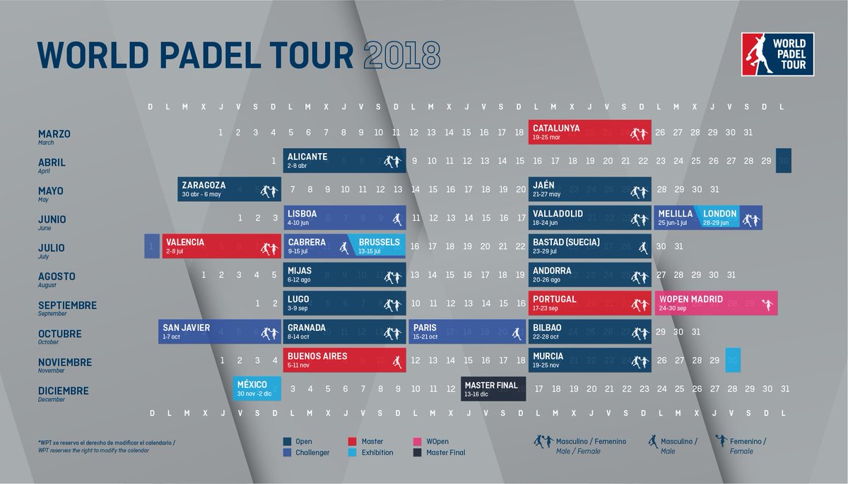 El calendario 2018 se ha cerrado con el anuncio de las 9 pruebas que se han dado a conocer hoy en la gala World Padel Tour 2018.
