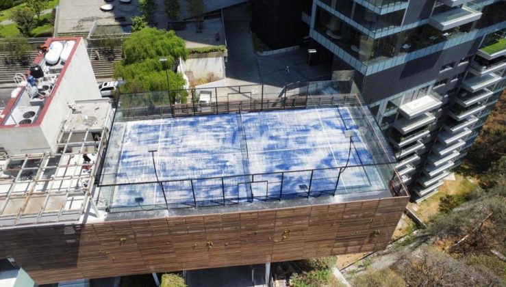 A estas alturas no es ninguna novedad ver pistas de pádel en azoteas, pero no todas son iguales. Y sobre todo, no todas están instaladas en el centro de la azotea y se puede entrar y salir por las dos puestas. De hecho, algunas en parte o en su totalidad están fijadas en un soporte bajo el cual no hay nada. Fijaos en la pista de la residencia Student Experience de Granada (España) o en la pista del Parque Residencial Vidalta de México.