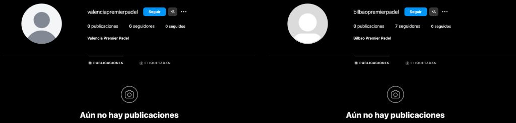 Existen dos cuentas de Instagram con el nombre ya registrado llamadas @valenciapremierpadel y @bilbaopremierpadel. Siguen el formato de todas las cuentas de RRSS propias del promotor del evento. Además, les siguen personas con peso en el sector del pádel profesional.