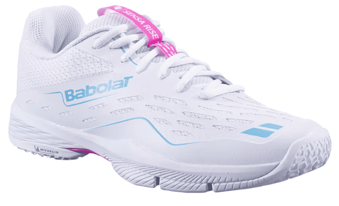 El segundo modelo femenino son estas Sensa Rise Women equipadas con una malla transpirable y un refuerzo sobre la misma que mejora la estabilidad. Ofrecen un soporte óptimo durante los intercambios largos y lucen un diseño moderno y femenino. Estas también tiene la suela Michelin y la tecnología 360º Flex.